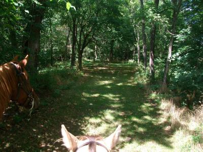 One hazard to be aware of is wire fencing and barbed wire fencing in different places close alongside the trail. If your horse should spook at the wrong time, it could be caught up in it. One place even had one strand of barbed wire lose on the ground across the trail. We cut it out and removed it, but it remains a possibility that more could be “unearthed” over time and trail use.