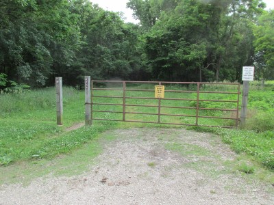 | Signs and gate to trails from Trailhead lot just above. |