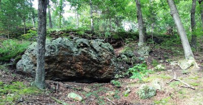 | Part of a rock outcropping in the northeast section of the trail. |