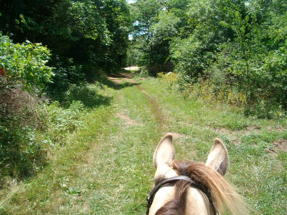 Small entrance on left is what you and your horse will have to squeeze through to get to the trail. |