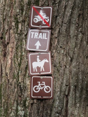 | Trail markers used on the trail. ATV’s aren’t supposed to be on this trail, but we have often seen signs of them being there. |