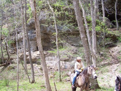 This trail has something for everyone who enjoys an adventure. There is a sign-up sheet at the trailhead. Please use it, both for safety reasons and so they can see that we are using the trail. There are a few water crossings, steep and rocky hills to climb, and the trail runs along a high bluff. Don’t cross Little or Big Paddy Creeks during high water. There is a connector trail toward the middle of the loop if you want to shorten your ride. The trail corridor is well-defined and marked with white diamonds. Two chapters of Show Me BCH, South Central and Brownfield, have recently done some work on this trail, clearing and clipping the whole trail system and adding signs. They’ve also done work on Big Piney Trail Camp, adding gravel and a mounting block.