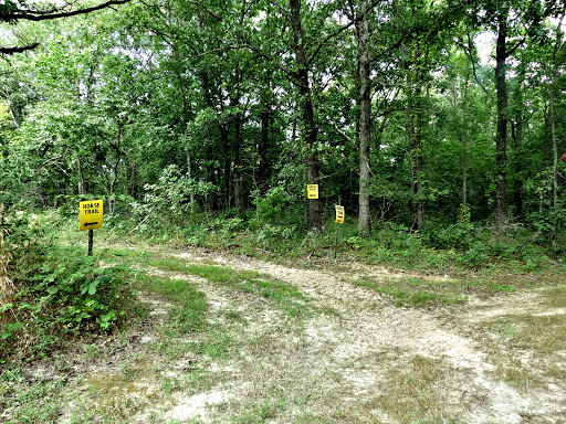 Part of the trail runs very close to the backside of a gun range. MDC logged some of the trees out of the woods between the gun range and the trails so, there’s less of a barrier now. Not only can you clearly hear shooting, but it has been reported to me that there were bullets ricocheting and whistling in the trees close-by on the trail right behind the gun range. This area of the trail has signs saying you are on the edge of the gun range. You might want to avoid this section of the trail, or at least make sure your horse is used to the sound of gunfire and ricocheting bullets.