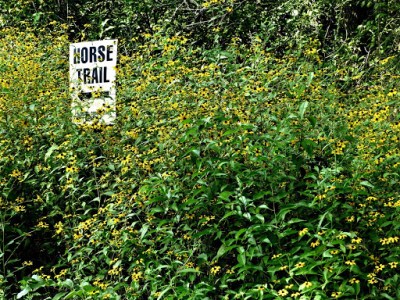 | Tiny Black Eyed Susans are more yellow than the yellow Horse Trail sign. |