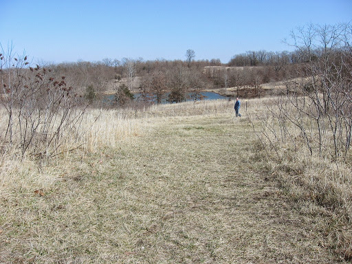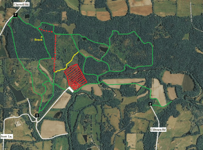 This trail is not difficult, however it goes through more fields than forest on the west side of the trail system, therefore it can be a very hot ride on a humid sunny day. It is mostly a very wide mown path of grass. There are a couple small creeks to cross, which are more like little ditches in the dry part of summer. A few different places are eroded or have deep holes from being ridden when it was muddy. A lot of deer and turkey are in the area. Several trails do not allow horses on them, however the trail is signed well and it’s obvious what trails you’re supposed to avoid. There is a good place to stop and rest in the woods, in the NW section of the trail-system near Claywell Pond. It’s a nice shady spot where someone put a bench on the west side of the trail. One nice thing I noticed about this trail is, it’s so widely cut, I didn’t go through one spider web across the trail anywhere.