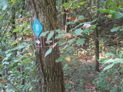 The trail can be difficult with quite a few steep hills and creeks to negotiate. The north side is marked with blue diamonds, the south side with white. The trail gets confusing in the area of Bull Camp Hollow. Some of the trail follows forest roads. In the summertime watch out for ticks, venomous snakes, and yellow jackets. Do not try to cross Spring Creek during high water.