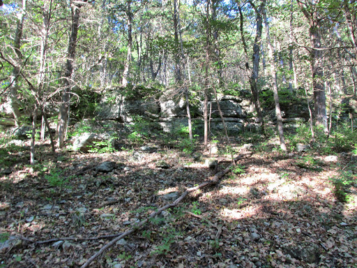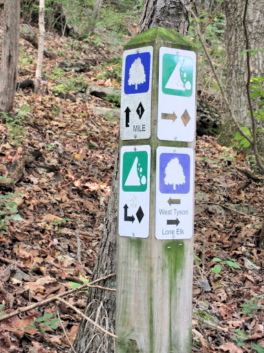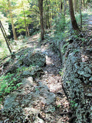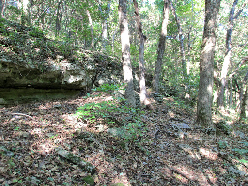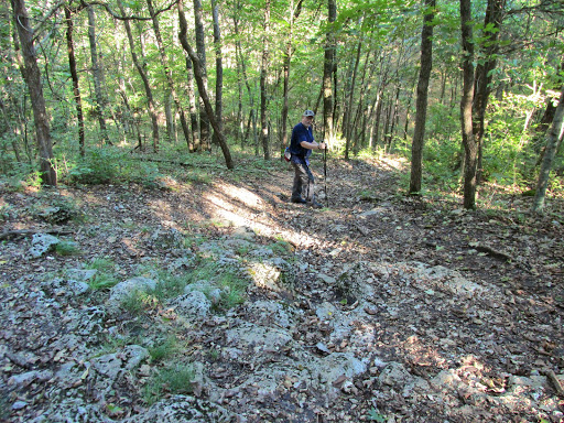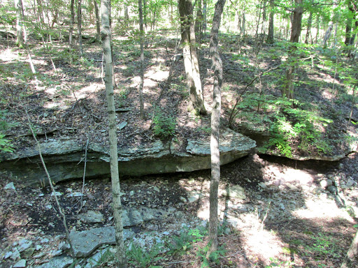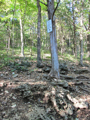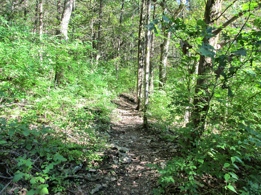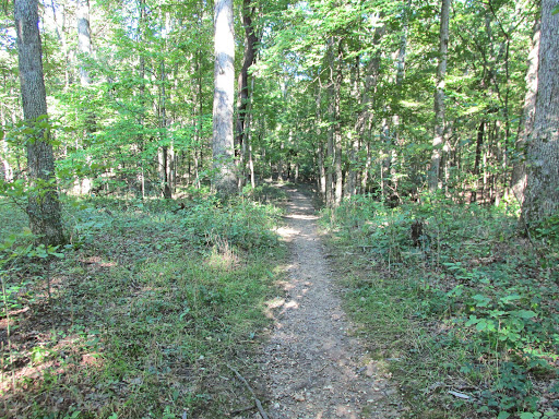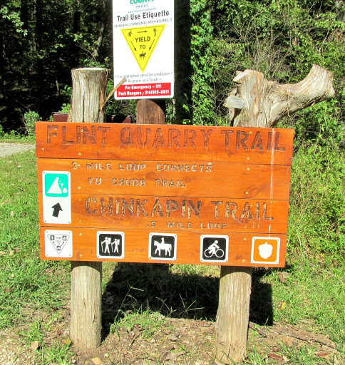 Flint Quarry Trail: (3 mile loop) Single Track, rough and rocky. There is an overlook with a bench in the northeast area of the loop. There is a really neat rocky ledge that you ride along for a while.