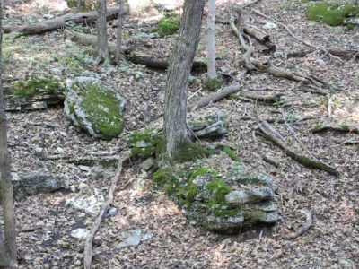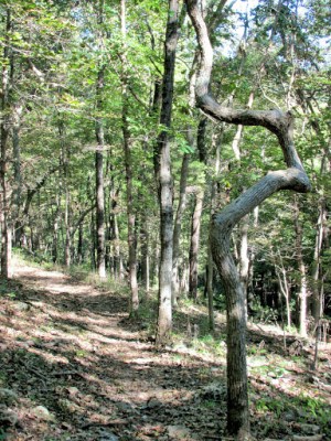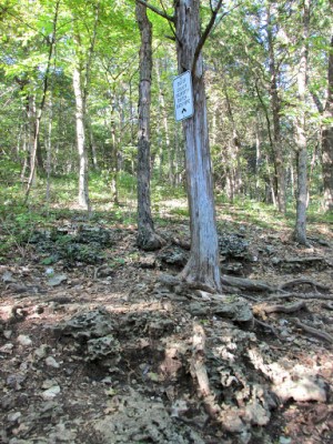 | This is looking back at the tree with the sign while standing in the narrow rock passage. If you come from this direction, you’d have to go up a tiny steep rocky hill and turn left here. |